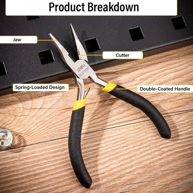 The DELI Long Nose Pliers are built for precision, strength, and dependable performance — ideal for electricians, mechanics, DIYers, hobbyists, and technicians. Designed to reach tight spaces and handle fine-detail work with ease, these pliers combine rugged construction with ergonomic comfort.